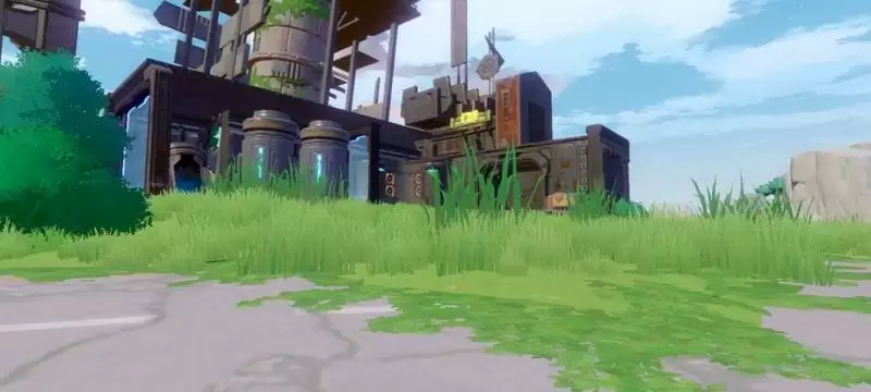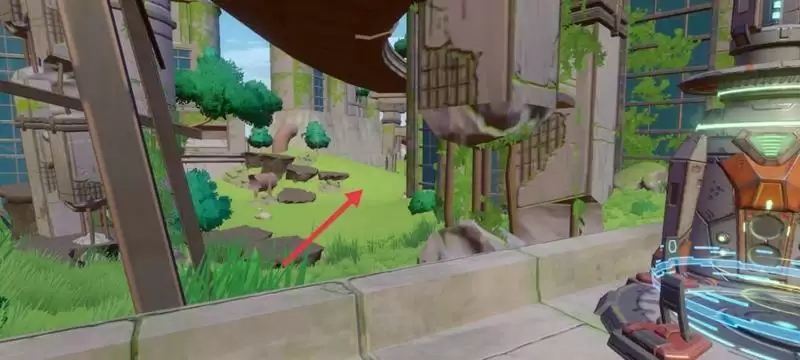 到了折跃门后看向折跃门左方朝着对面带着一根断掉的水管的一处废墟走,之后往那废墟右方的一块草地走。