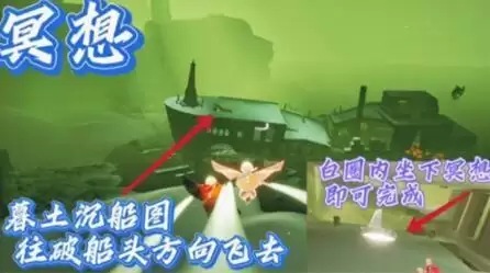 4、第四个任务需要玩家去墓土沉船地图,进去之后找到船头的位置,在旁边冥想就可以完成最后一个每日任务啦。