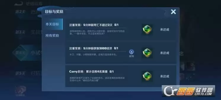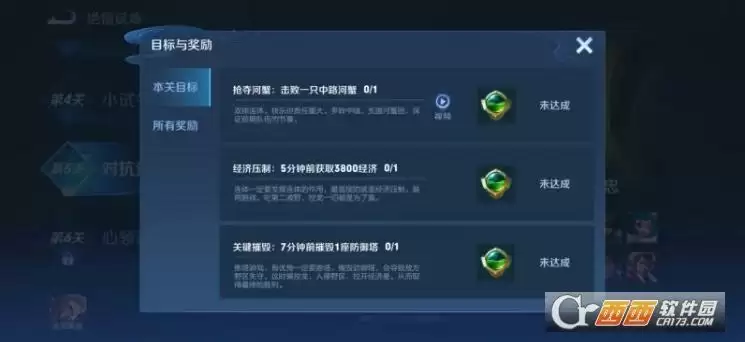 1、绝悟试炼黄忠不同的关卡目标不一样,有的非常简单的,有的需要花费一些时间,例如第4关关卡目标就需要玩家注重发育,前5分钟死亡不超过2次,5分钟前获得3000金币,carry全场累计击败4名英雄,按照关卡目标完成即可。