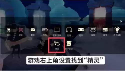 1、进入游戏后,在游戏右上角的设置里面找到精灵。