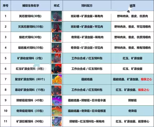 创造与魔法地火深渊宠物饲料配方有哪些