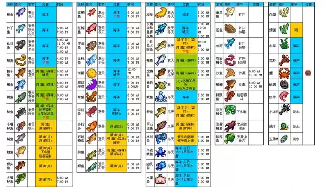 星露谷物语游戏中具有丰富的玩法内容,其中钓鱼是一个有趣的玩法内容,很多玩家对于游戏中的钓鱼点位置尚不清楚,以及鱼类的分布,那么具体的星露谷物语鱼类分布有哪些?下面就为玩家带来星露谷物语钓鱼地点,一起来看看吧。