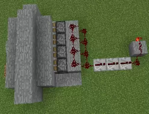 8、这样就形成了一个简易的电路了,通过循环激活活塞,达到推出石头的目的;
