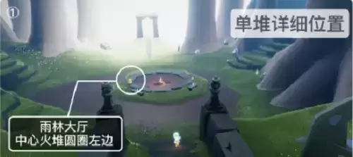 1、第一跟蜡烛在雨林大厅的中心火堆圆圈左边。