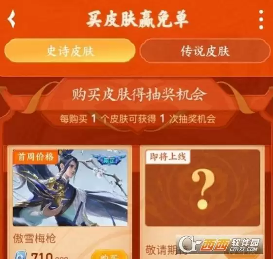 1、在本页面活动成功购买“传说皮肤”或者“史诗皮肤”中任意一款皮肤的用户,即可获得一次免单抽奖机会(购买对应皮肤获得对应免单抽奖机会)。