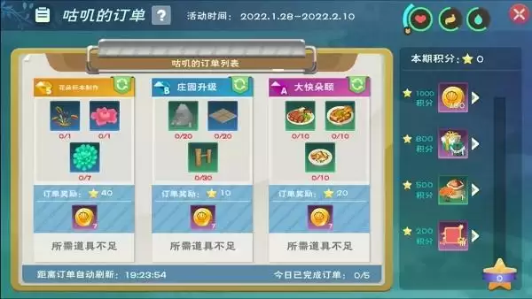 2、需要探险家们帮助咕叽找到它需要的物品,收集物品上交就可获得相应的积分和道具奖励,界面的左侧就是咕叽的订单哦。