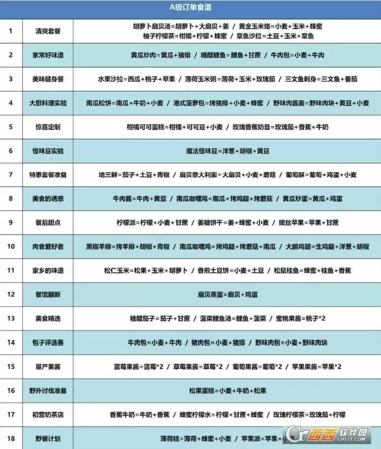 创造与魔法咕叽的订单食谱分享