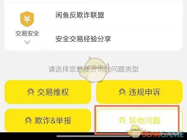1、打开闲鱼app,在我的页面选择帮助与客服,然后点击其他问题。