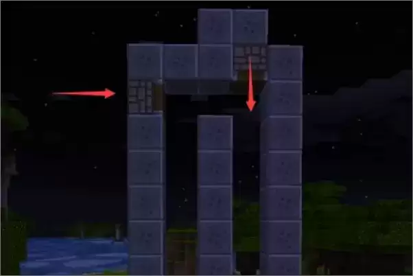 3、如箭头的朝向放置活塞(不能用粘性活塞),值得注意的活塞只能推动12格的东西,方块高度不能超过12。