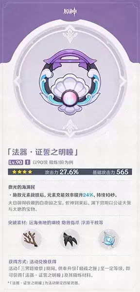 町法器·证誓之明瞳]为活动限定四星武器。
