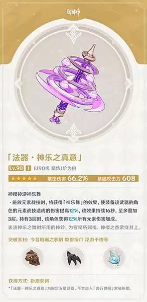 法器·神乐之真意』为限定五星武器,不会进入「奔行世间]常驻祈愿。