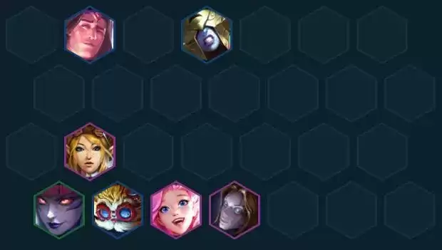 1、棋子组成:宝石、冰女、猫咪、时光、风女、萨勒芬妮、大头、发条