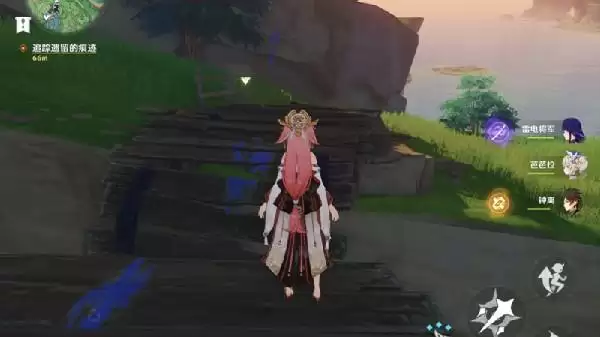2、玩家在观察茶杯的位置向有解谜的方向看;