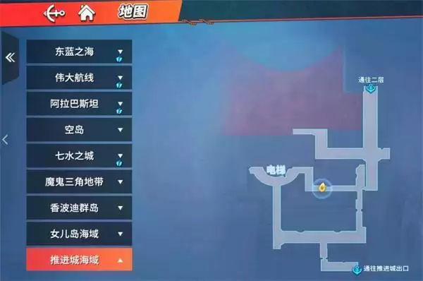 红莲层图示牢房→一层电梯→二层电梯→三层电梯→回到图一