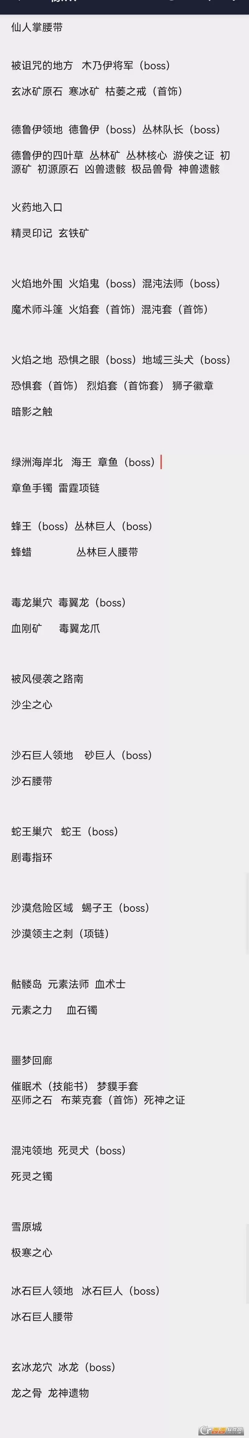 装备推荐狮心虽然修正了但是还不错,核心装备就是魔力2件套在刷个枯萎之戒,后面是整理吧里有人发的地图怪物分布跟所有的装备出处这都在正式qq群里有。