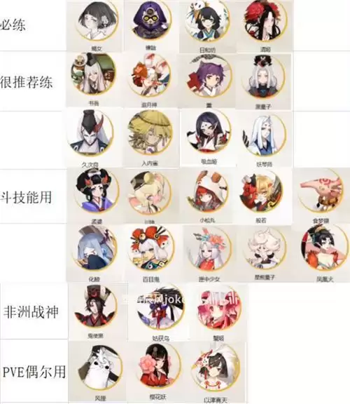 总而言之,式神优先就挑T0和T1的练就好,毕竟泛用性高可以用很久,其他式神如果是符合XP,也是可以练一练的,就算是T2也有出场的机会。