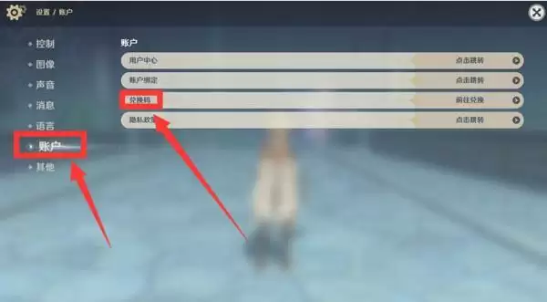 2、进入设置页面点击账户,就出现了兑换码的选项;