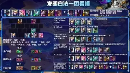 开局优先抢水滴/大棒,前期核心装备就是青龙刀/鬼书,前期有发明家配合打架海克斯基本无脑连胜,装备看谁合适凑羁绊以及蓝条60左右就是最佳,卢锡安/蚂蚱都是不错的选择,这融合新思路就是发明拼多多连胜,后面7人口开搜5发明,有狗运能摸到发明家纹章的话基本=吃鸡,除非有怪物,8人口将体系卡全部抽到2星基本就已经分到手了,剩下事情就是追三或者上人口找副C。
