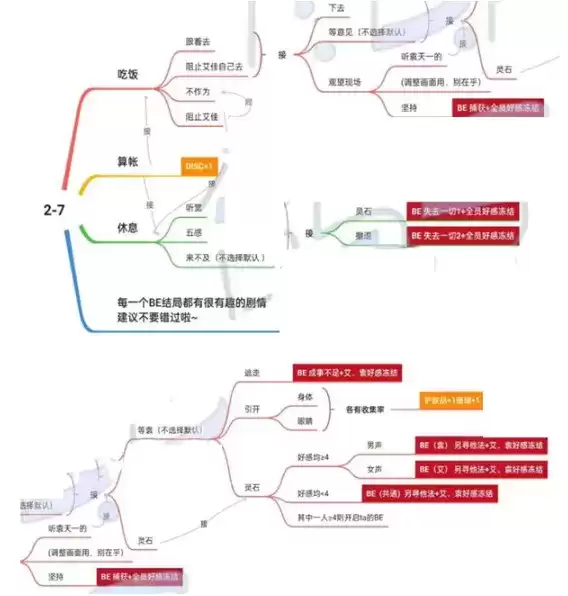 1、2-7建议路线:算账——吃饭——跟着去——想办法一探究竟——等待袁天一——引开——眼睛。剩下的选项基本上都是BE结局。
