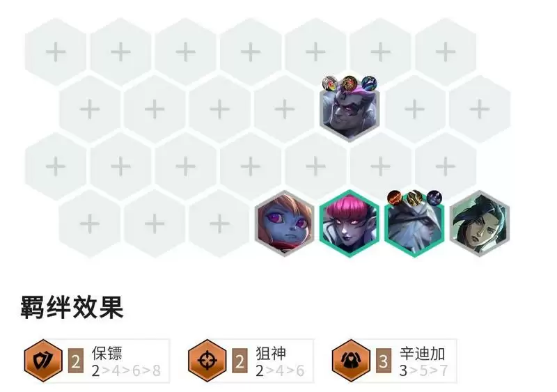 羁绊效果:5辛迪加、1微光首脑、2保镖、2学者、2白魔法师、2精密发条