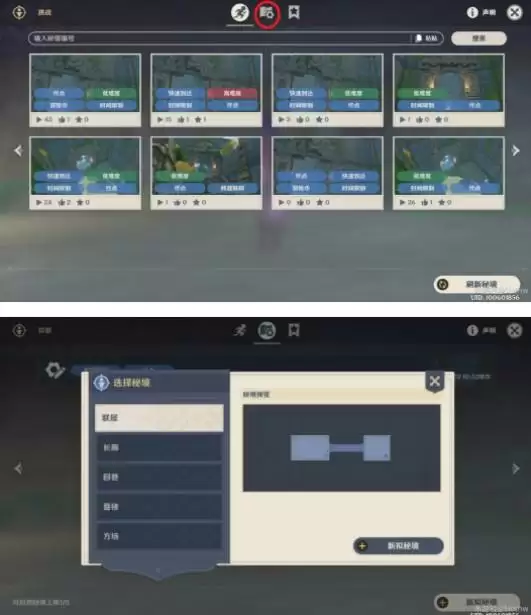 点击图中红圈处后点击新拟秘境即可,在新拟秘境中可以选择秘境地图
