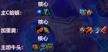 棋子组成:赛娜、加里奥、萨勒芬妮、阿利斯塔、塔姆、纳尔、希尔科