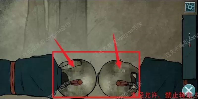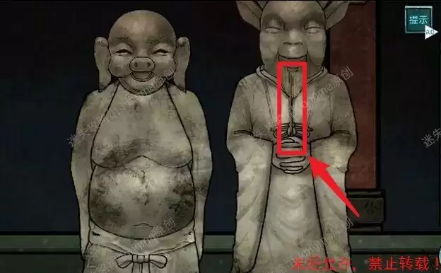 点击左边俩个雕像,将猪头和羊头安装上去,得到【香】。