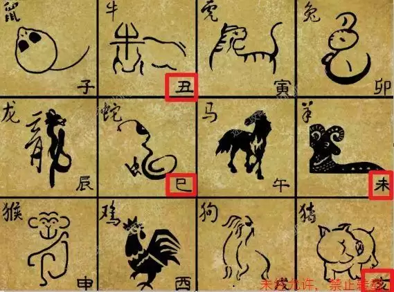 将“亥未巳丑”对照第一章中的生肖图,得到“猪羊蛇牛”。