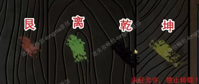 回到一楼,观察神像上方的八卦镜,记住:艮、离、乾、坤对应的位置和顺序,返回二楼,观察最右边的八卦,按照顺序点击对应的位置。