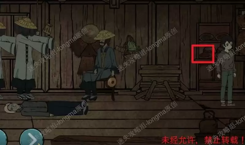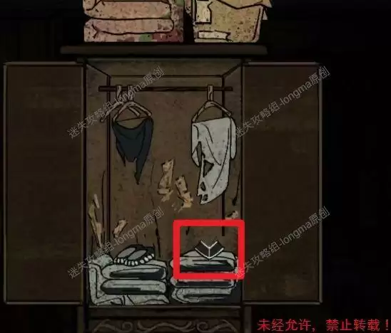 进入杂物间,观察右边的柜子,完成小游戏(将小零件移动至对应颜色和图形的位置),得到【素衣】,在柜子左边的框中得到【斗笠】。