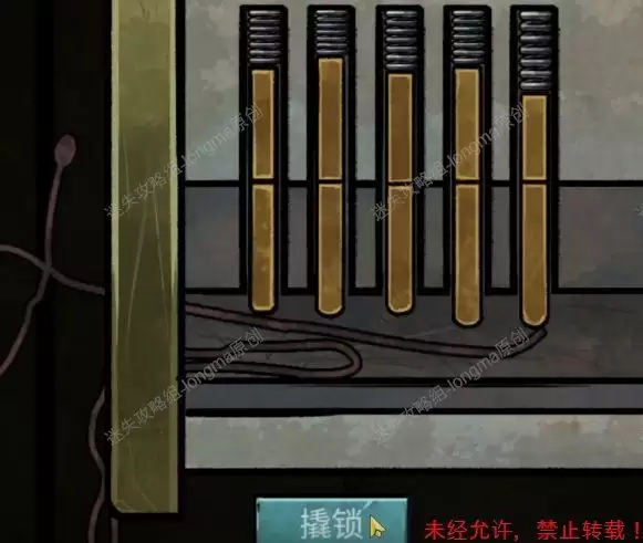 来到最右边门口,使用【铁丝】开门(小游戏:点击撬锁,每个机关到一定的高度时松开,开始撬第二个机关)。