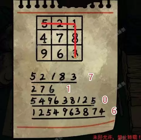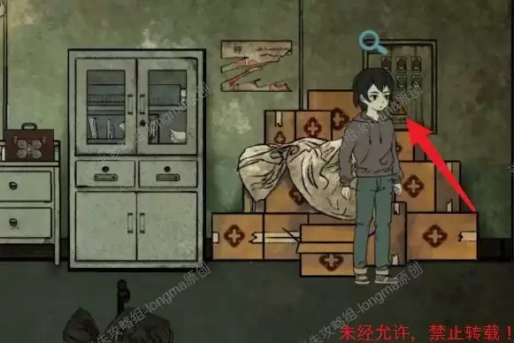 向左返回药箱处,按照上方的数字图形输入密码(如图65.1),打开箱子得到【麻醉针】和【铁丝】。
