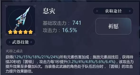 1、这个武器是除了息灾意外最好的替代品,可以提供大量的攻击力加成;
