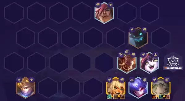 阵容推荐:瑟提(5)、大树(1)、狼人(4)、璐璐(2)EZ(5)、努努(3)、千珏(3)、艾希(4)