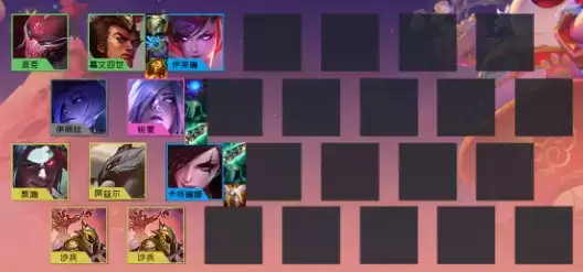阵容推荐:伊丽丝/派克/嘉文四世/伊芙琳/卡特琳娜/锐雯/凯隐/阿兹尔