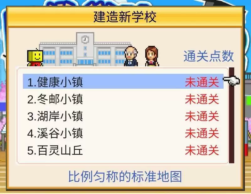 在游戏的开局,会有学校地址的选项,一般推荐以健康小镇,作为新手的开局地图。