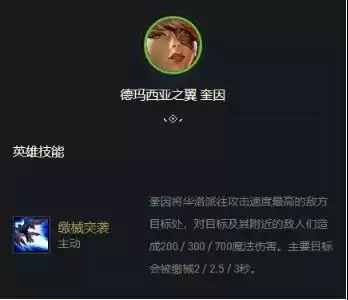 2、在打同行或是AD核心的阵容时有很强的限制能力,虽然奎因的技能蓝条并不算短;