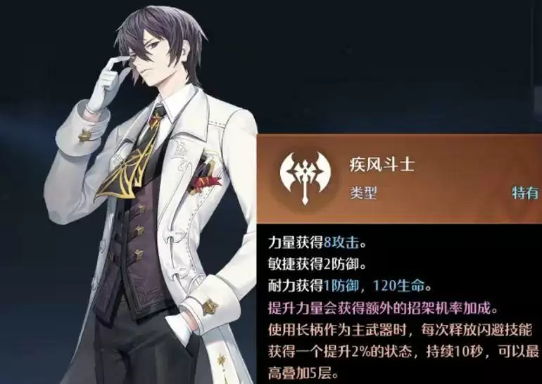 长枪职业选择卡弥附体时每次翻滚会获得一个持续10秒的2%的状态加成且可以叠加5层,长枪职业本就是有肉又有伤害,配上这个加成后可以说是越战越勇完美契合长枪职业。
