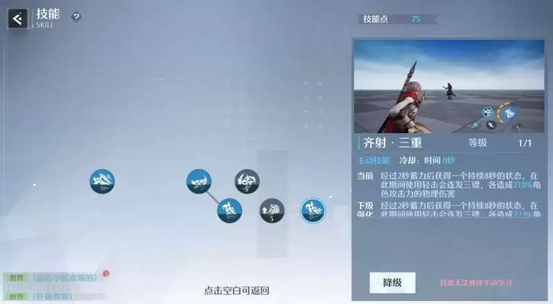 2、极致输出型:同样游戏前期不缺技能点是能把本职业所有能学的技能都点了,那么第二套多出来的技能点建议点到手弩里的技能点满。