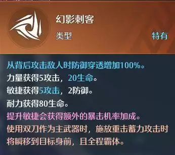 由于刺客型幻灵附体时,敏捷额外提供暴击几率,因此双刀玩家应优先提升敏捷属性。