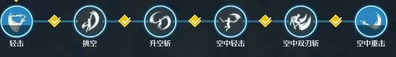 双刀基本连招就是最简单的轻击+重击配合:轻击一段+重击挑空+空中四段轻击连斩+重击下劈,完成连招combo。