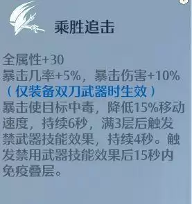 在后期职业技能点到1200技能点时,把通用天赋页的【厉战之躯】或【风之忍者】换为双刀天赋页的【乘胜追击】毕业天赋没有之一。