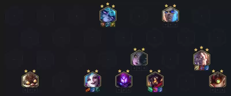 2、这套阵容的策略的是速七找卢锡安和薇古丝,2-1不搜牌升四,开3约德尔配合2极客等羁绊打前期连胜;