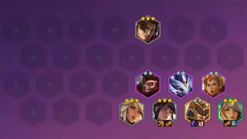 阵容推荐:不屈战神-德玛西亚之力(1)、齐天大圣-孙悟空(4)、驭影双生-永猎双子(4)、曙光神将-曙光女神(4)、华剑战姬-无双剑姬(1)、天罚弩神-暗夜猎手(1)、圣光战神-正义天使(5)、光辉女郎-拉克丝(2)