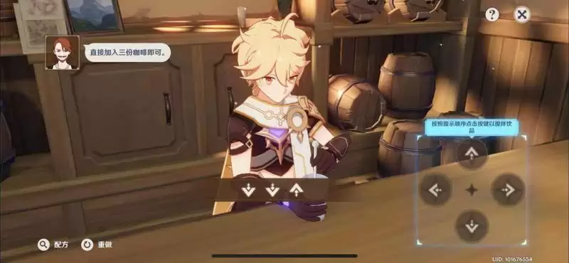 1、游戏中金色伊甸这个饮品以咖啡为底,并且搭配仁热奶以及奶泡;
