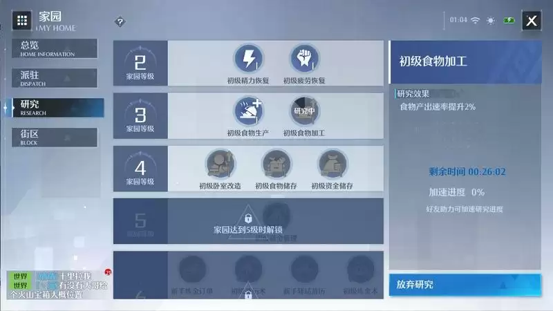 随着家园等级的提升,陆续会开放精力、疲劳、生产、加工、资金等各种各样的科技。研究完成后可对相应功能进行加成。