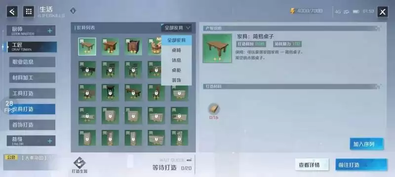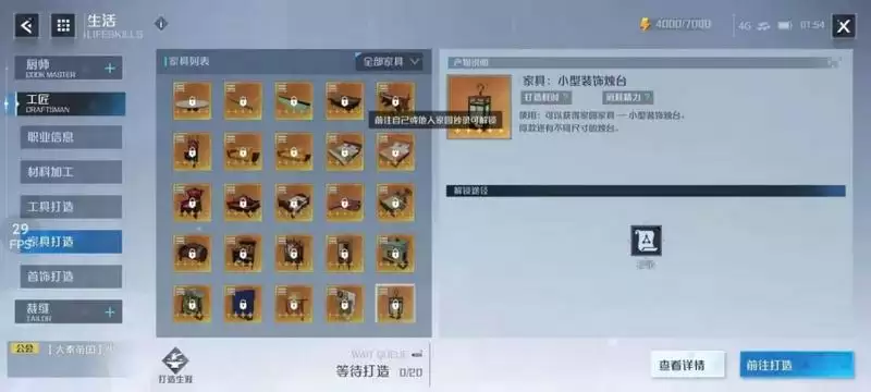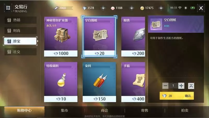 前期简易家具的抄录需要用到的材料叫做空白图纸可在交易行-购物中心-珍宝购买20钻一个,和交易行-商会-生活中120贝壳一个。