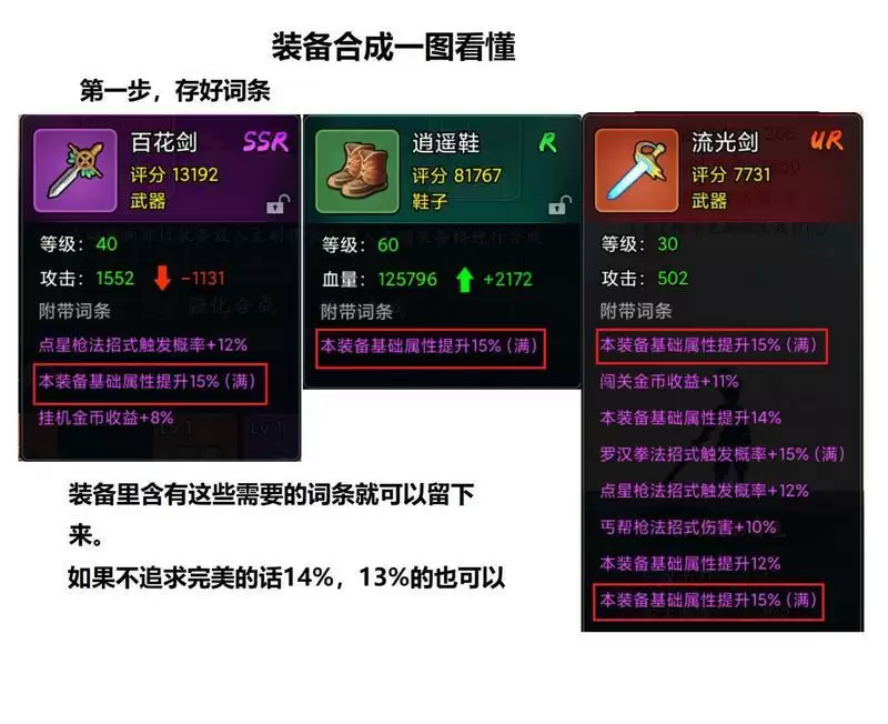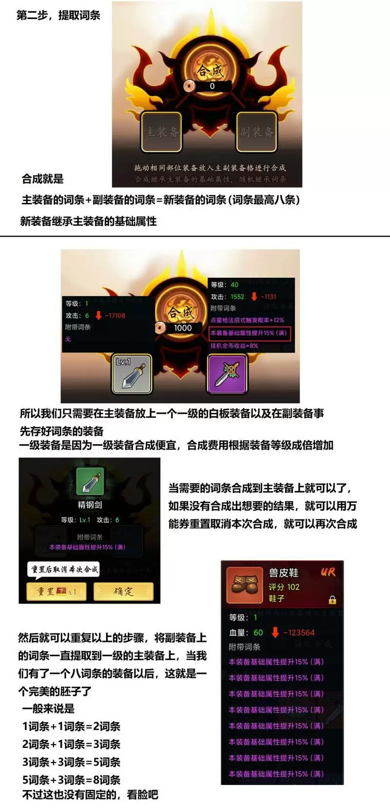 接下来说下合成,咱们最终的目标是815也就是8个15%,前期合成1+1=2.2+2=4等等,其实就是算数道理很简单,每个装备里面有一个15那么他俩合成能出2个,那么也就是说两个装备合成15的数量加一起8个或8个多,那么肯定能合出815.这个是基本概念,至于玄学什么的都是概率问题,感觉都一样,2+6 5张卷照样出815