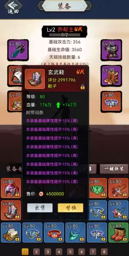 首先说下4套。基础属性套,挂机金币套,闯关套,高品质套