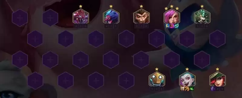 阵容推荐:蒸汽机器人、皮城执法官(蔚)、虚空恐惧(大虫子)、虚空遁地兽(挖掘机)、齐天大圣(猴子)、暴走萝莉(金克斯)、双帝女枪(女枪)、南天之怒(狼人)
